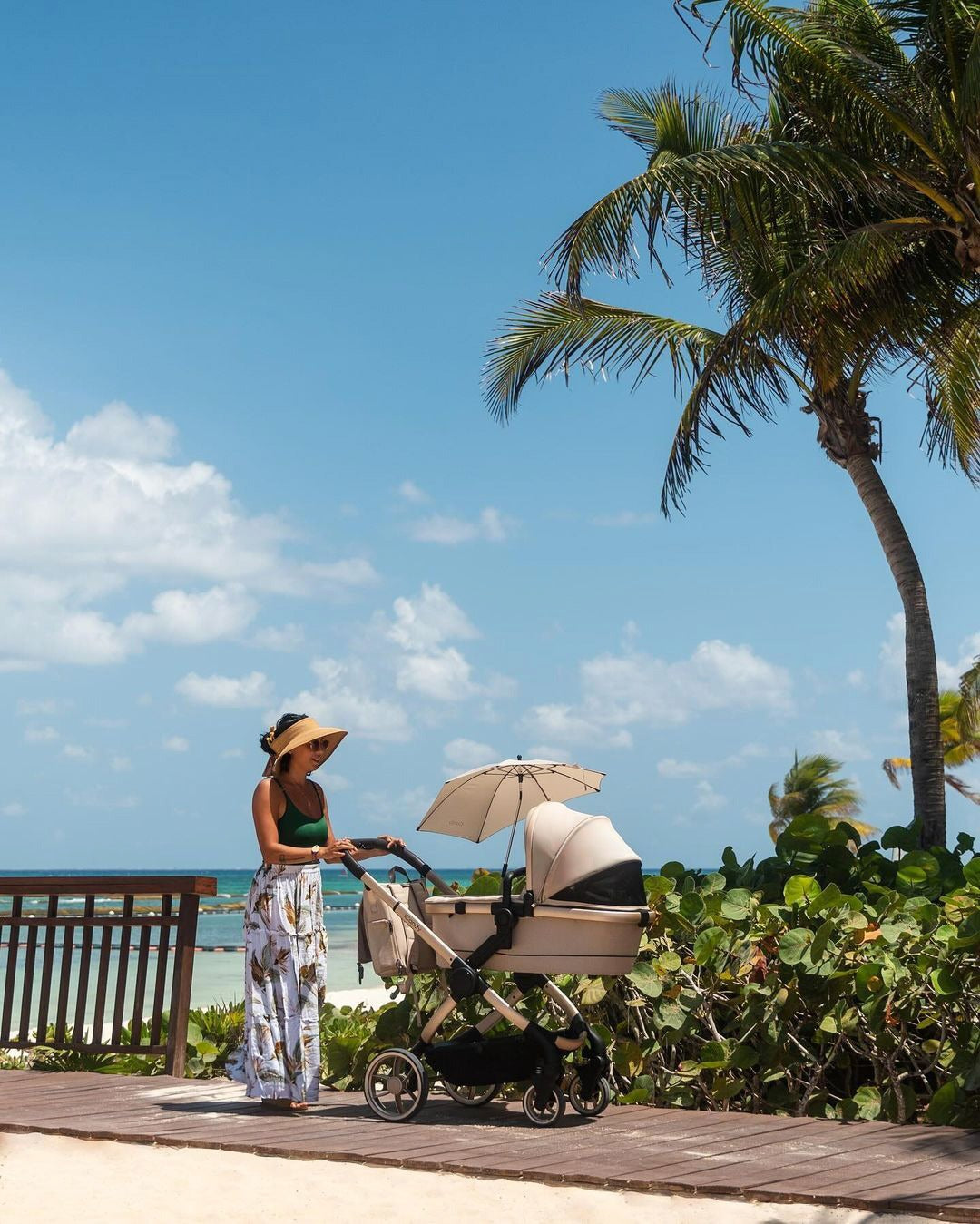 Exploring paradise with our iCandy Biscotti pushchair - the perfect companion for sunny adventures!