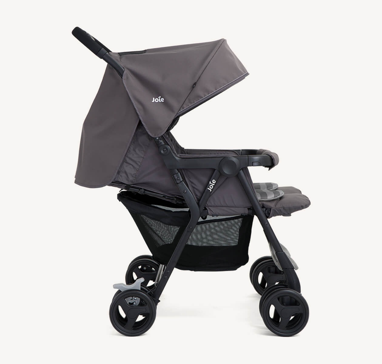 This lightweight double stroller sports two customisable seats – perfect for navigating adventures with little ones who don’t always see eye to eye.